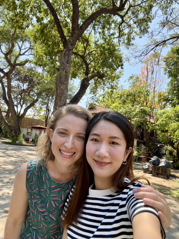 Elle vit à Chiang Mai, en Thaïlande. Moi, à Montréal, au Canada.